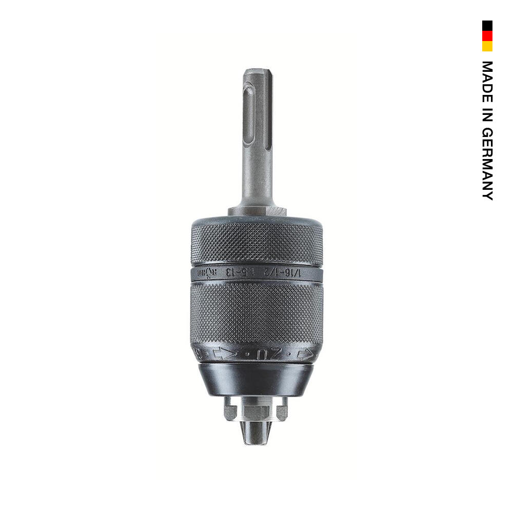 • Schlagbohrfestes Schnellspann-Bohrfutter mit Radialverriegelung und Kunststoff- oder Metallhülse.